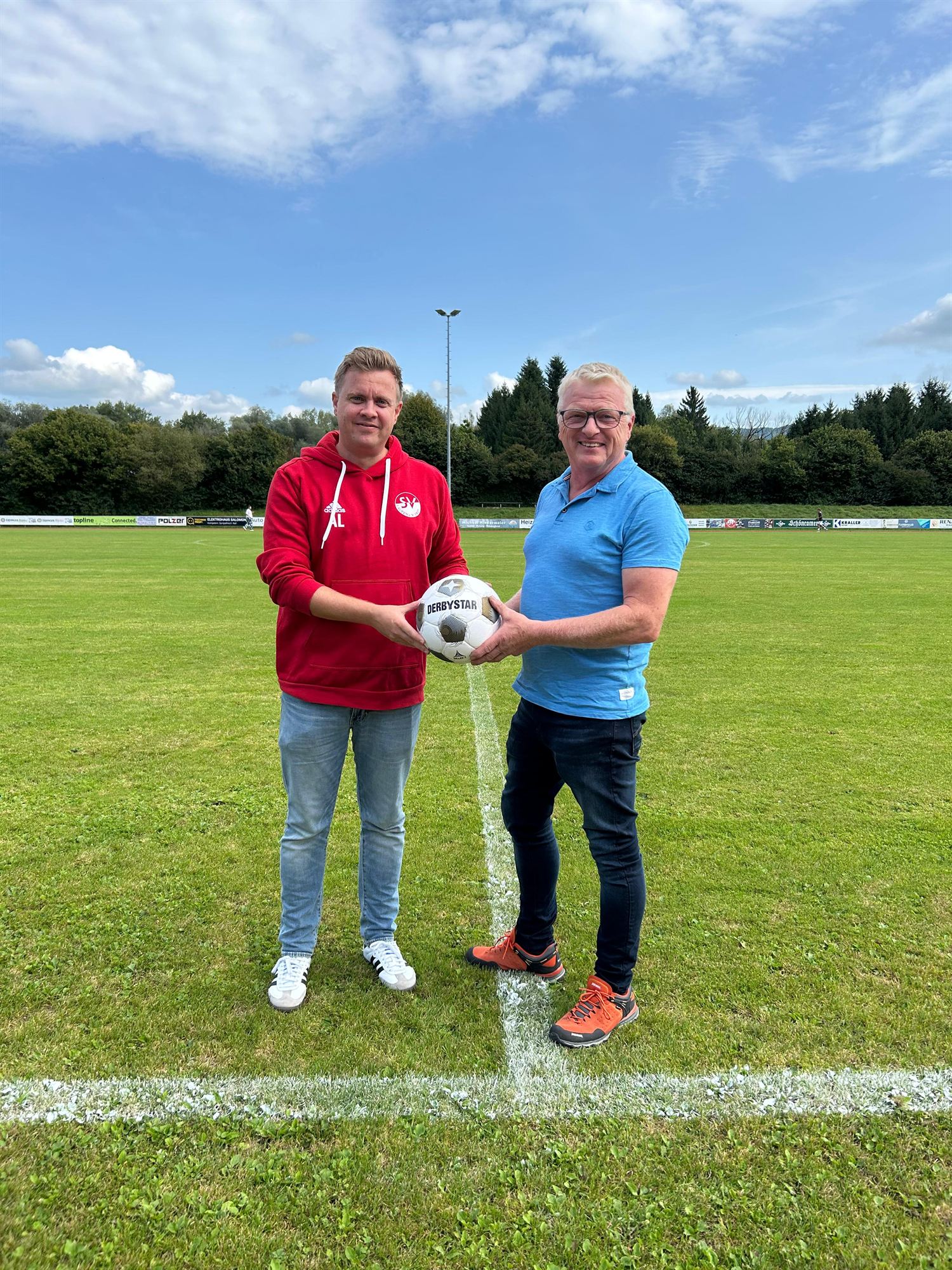 Die Familie Braunsperger aus Laufen zeigte sich erneut als treuer Partner des Sportvereins Laufen. Der Inhaber der heimischen Metzgerei, Hermann Braunsperger jun., sponsorte zum Heimspieltag am 13. September 2025 den Herrenteams der Salzachstädter zwei neue Spielbälle der Marke Derbystar.