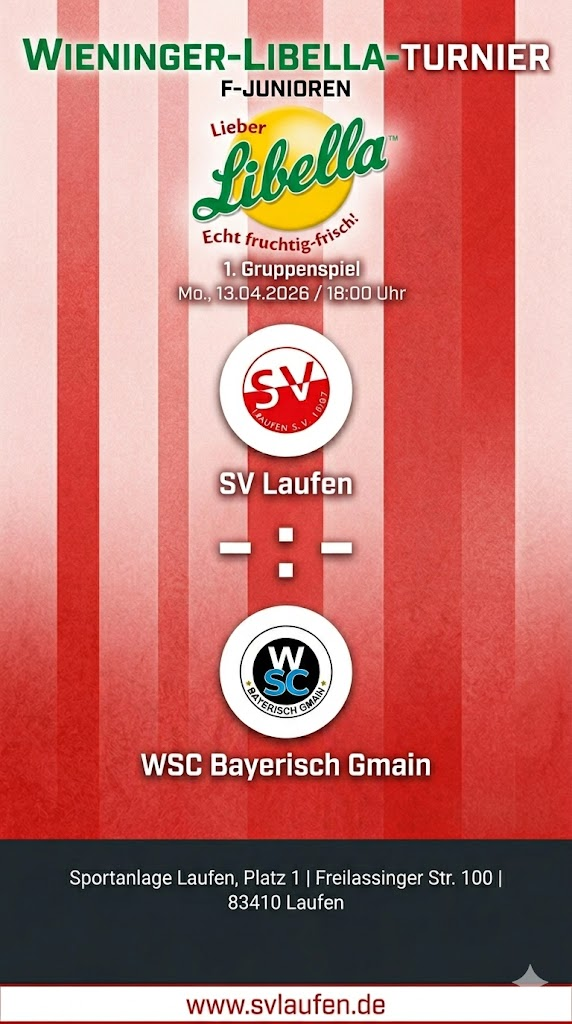 Besonders freut man sich auf den FairPlay-Modus. In dieser Altersklasse stehen der Spaß am Spiel und das Miteinander im Vordergrund – die Trainer greifen nur bei Unstimmigkeiten ein. Gespielt wird mit 6 Feldspielern plus Torwart über eine Spielzeit von 2x20 Minuten. Ein zusätzliches Schmankerl: Unter allen teilnehmenden Mannschaften werden vier Libella-Trikotsätze verlost. Vielleicht trägt das Team ja bald das Glück auch auf der Brust! „Die Jungs sind heiß und können es kaum erwarten, dass der Ball am 13. April in diesem Wettbewerb endlich wieder rollt. Wir wollen zeigen, dass wir auch draußen einen attraktiven Fußball spielen können“, so das Trainerteam des SV Laufen.