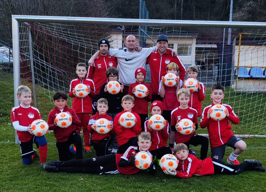 Volltreffer für den Nachwuchs: F1-Junioren des SV Laufen freuen sich über neue Trainingsbälle
