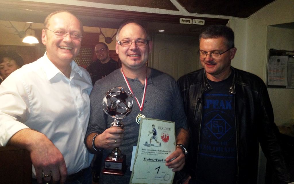 Manfred Reidinger (mitte) nahm die Ehrung für den Turniersieg im Namen des Trainer-/Funktionärsteam aus den Händen von SVL-Vorstand Peter Kautzschmann (links) und Peter Höglauer entgegen.