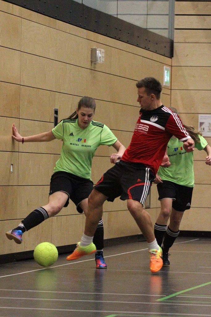 In zwei Gruppen und darauffolgenden Platzierungsspielen wurden die Plätze ausgespielt. Der SV Laufen trat in der schlussendlich stärkeren Gruppe B an und hatte es zum eigenen Turnierstart mit dem stärksten Gruppenkonkurrenten des USV St. Georgen zu tun. Hier ging es gleich rasant zur Sache. Vorerst allerdings waren Torchancen eher dünn gesät, so dass der erste Torjubel auf sich warten ließ. Nach vier Minuten Spielzeit (14 Minuten reguläre Spielzeit) ging der USV St. Georgen in Führung. Dieser Stand konnte aber eine Minute später egalisiert werden. Ein Billardtor von Michael Felber sorgte für den Gleichstand. In der siebenten Spielminute dann der Führungstreffer für den SV Laufen. Ein hoher Ball von Jonas Gembala von der Bandenseite erreichte das Zentrum, wo Simon Maier artistisch zum 2:1 einnetzte. Laufen nun mit leichter Feldüberlegenheit, die aber nichts Zählbares erwirkte. Im Gegenteil. Dem USV gelang zwei Minuten vor der Schlusssirene noch der Ausgleichstreffer. Da die St. Georgener wieder mehr Ballhoheit erkämpften, konnten sich sie dadurch noch das Unentschieden erkämpfen – 2:2. In der letzten Spielminute agierten der SV Laufen einen Hauch offensiver und geriet dabei kurz vor Schluss in einen Konter, den aber Torwart Niklas Reiter mit einer exzellenten Fußabwehr entschärfen konnte.