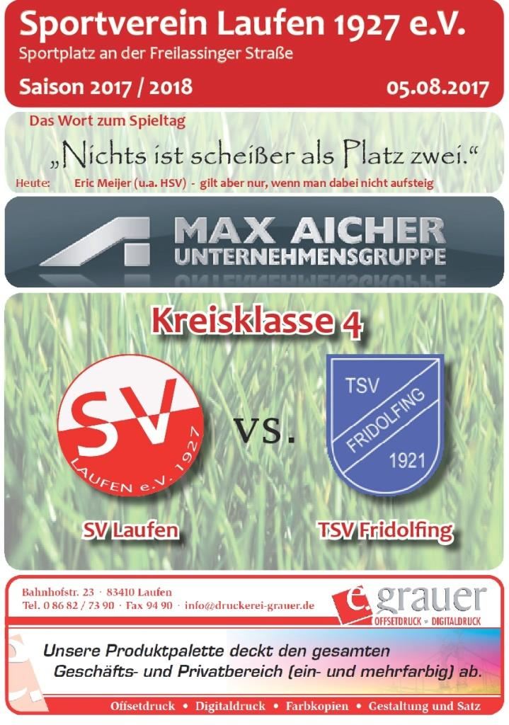 Für diejenigen, die es nicht zum Heimspieltag am Samstag schafften, aber auch für alle Interessierten, die sich im Nachhinein nochmals informieren wollen, bieten wir den besonderen Service an, die Stadioninfo nochmals nachzulesen. Die Ergebnisse des Spieltages in Laufen waren: SV Laufen - TSV Fridolfing 1:1.