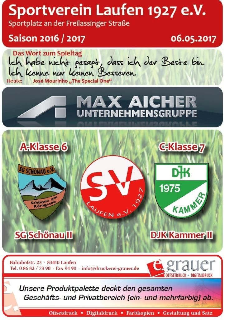 Für diejenigen, die es nicht zum Heimspieltag am Samstag schafften, aber auch für alle Interessierten, die sich im Nachhinein nochmals informieren wollen, bieten wir den besonderen Service an, die Stadioninfo nochmals nachzulesen. Die Ergebnisse des Spieltages in Laufen waren: SV Laufen 2 - DJK Kammer 2 5:1 und SV Laufen - SG Schönau 2 6:1.