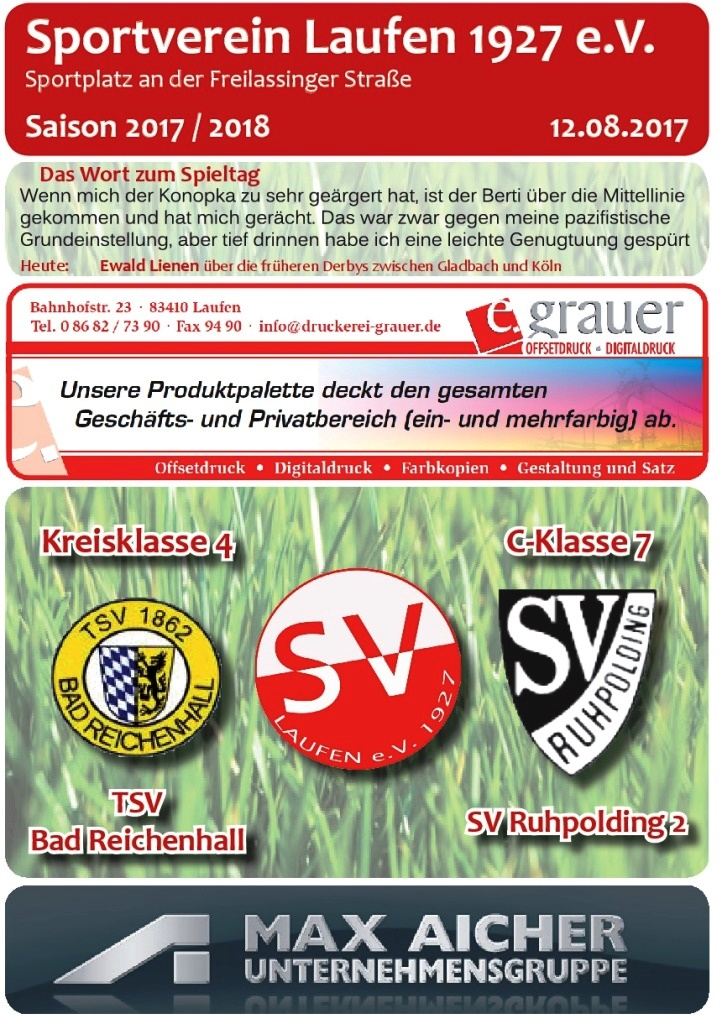 Für diejenigen, die es nicht zum Heimspieltag am Samstag schafften, aber auch für alle Interessierten, die sich im Nachhinein nochmals informieren wollen, bieten wir den besonderen Service an, die Stadioninfo nochmals nachzulesen. Die Ergebnisse des Spieltages in Laufen waren: SV Laufen - TSV Bad Reichenhall 4:0 und SV Laufen 2 - SV Ruhpolding 2 0:0.