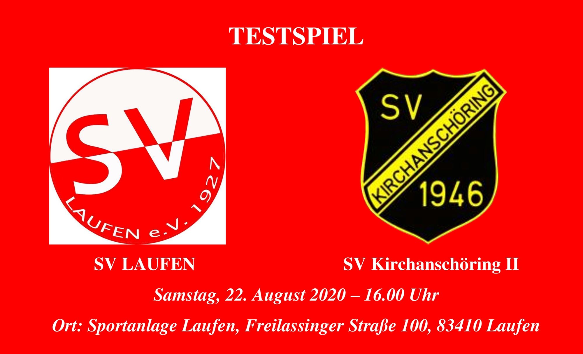 Dieser SV Laufen testet am kommenden Samstagnachmittag (erneut unter Ausschluss der Öffentlichkeit) auf heimischen Gelände gegen den SV Kirchanschöring II. Anpfiff am 22. August gegen den A-Klassisten ist um 16 Uhr.