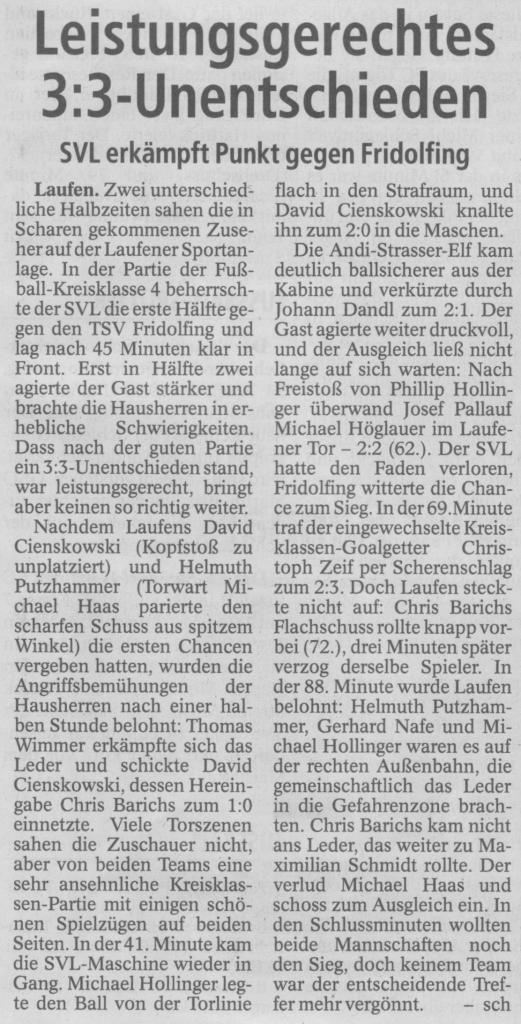 Auch die Presse berichtete am 23. April wieder vom SV Laufen.