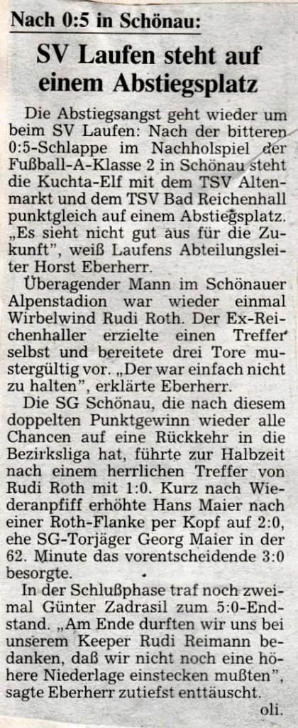 Auch die Presse berichtete am 20. Mai vom SV Laufen:
