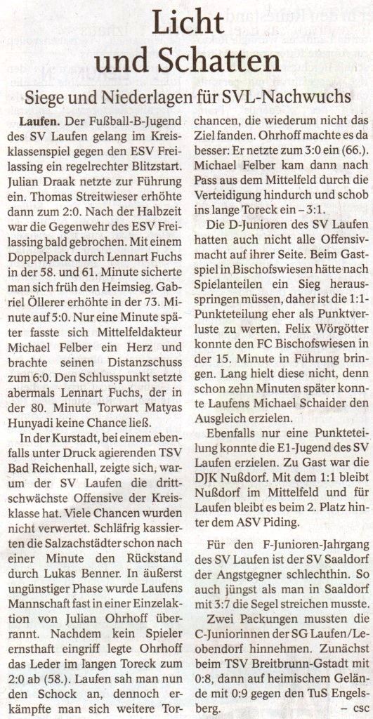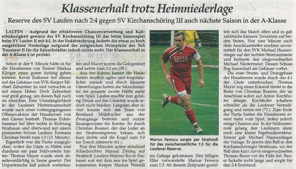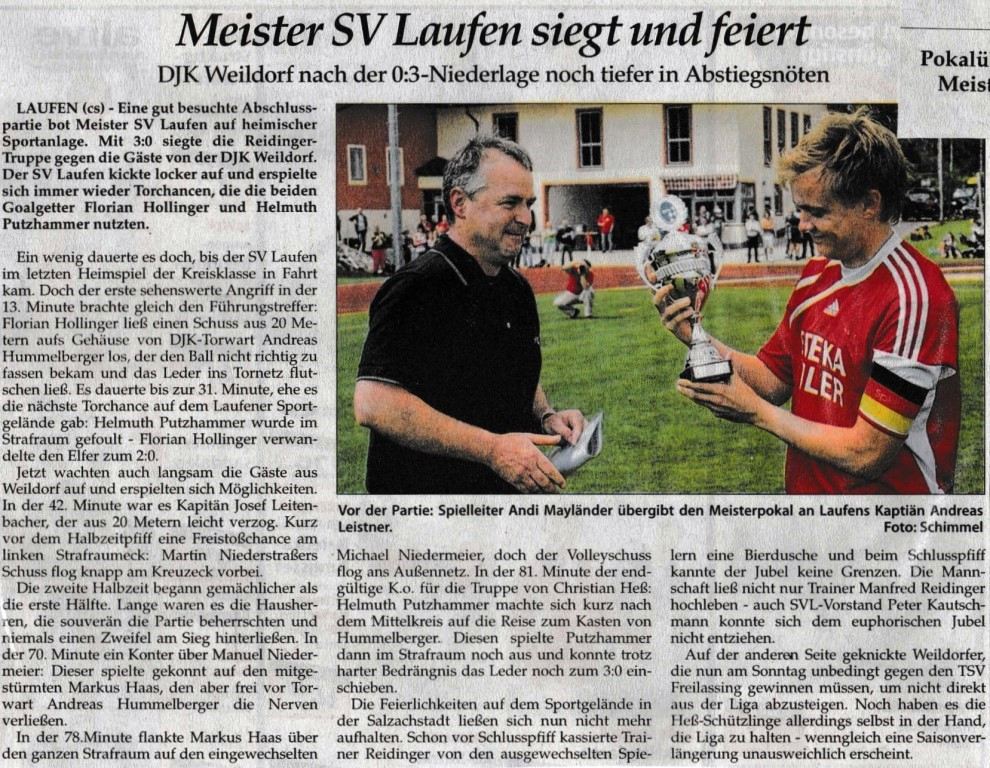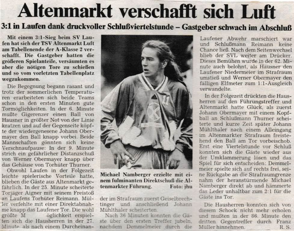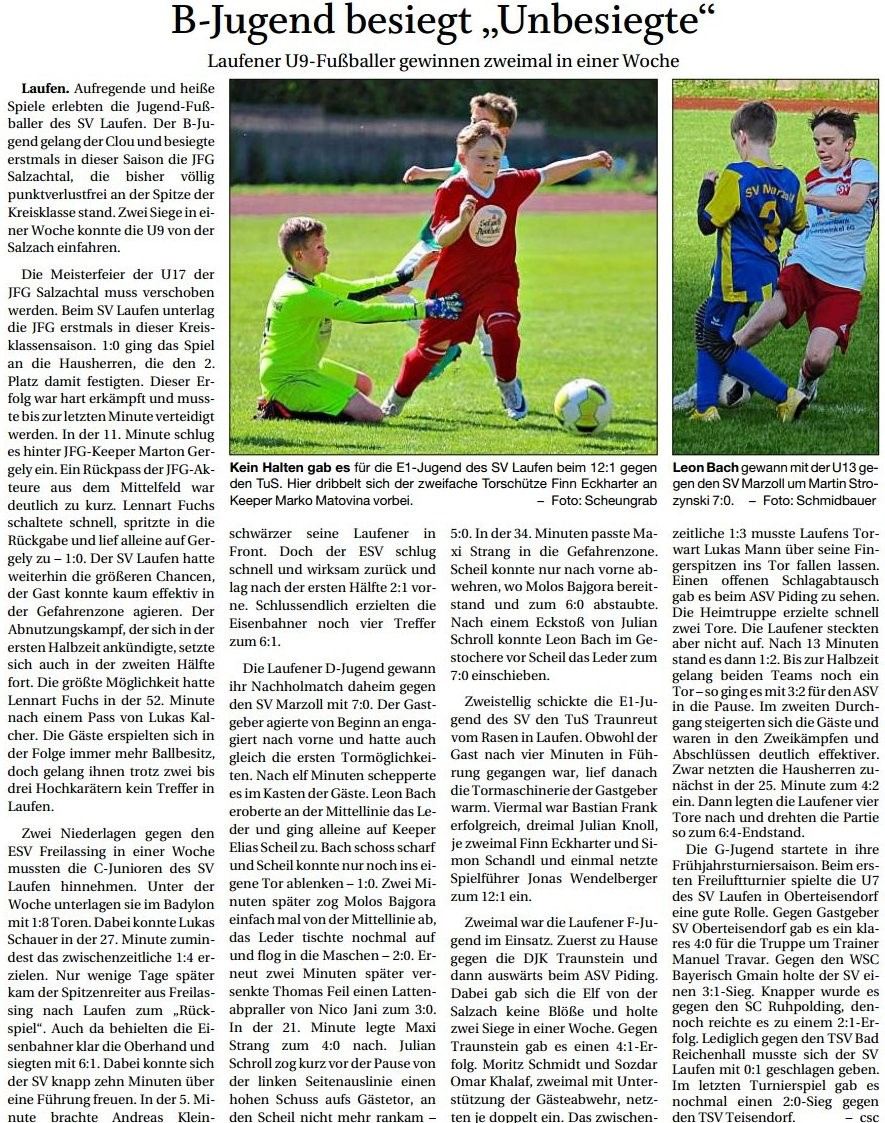 Auch die Presse berichtete am 23. Mai vom SV Laufen: