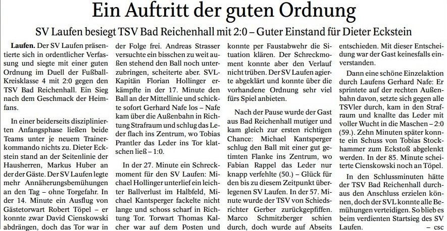1:0 Maximilian Hanel (18.), 2:0 Michael Hollinger (31.), 3:0 Florian Hollinger (56.), 4:0 Axel Richter (62.) und 4:1 Thomas Klinkenberg (77.).
