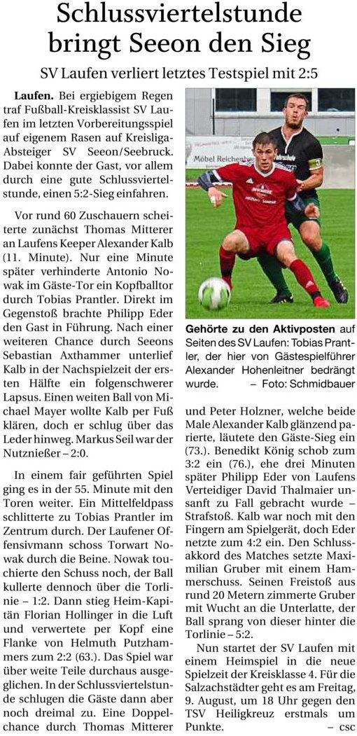 Freilassinger Anzeiger vom 10. August 2018: