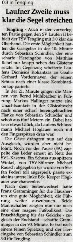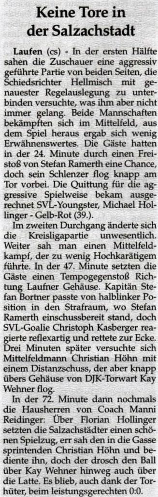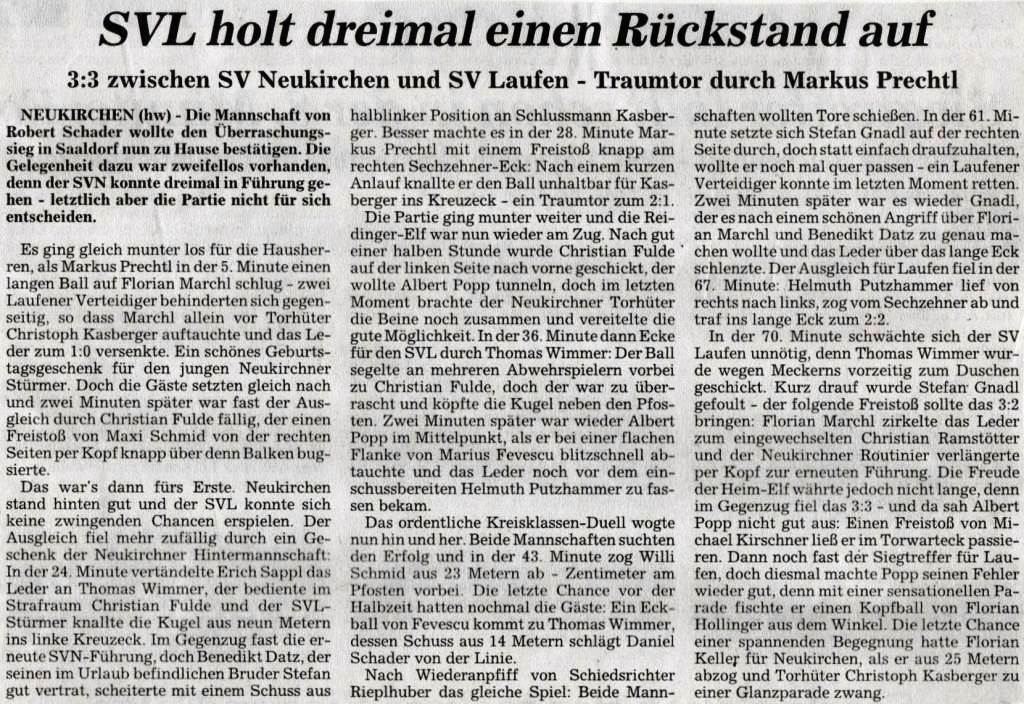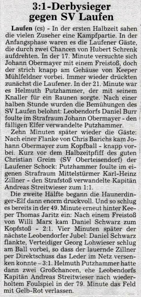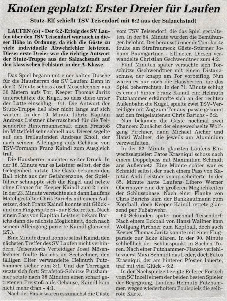 Auch die Presse berichtete am 3. September vom SV Laufen: