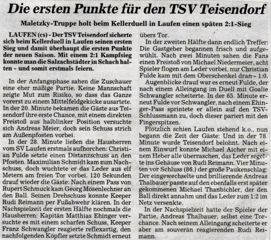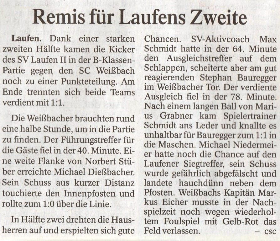 Auch die Presse berichtete am 5. September vom SV Laufen: