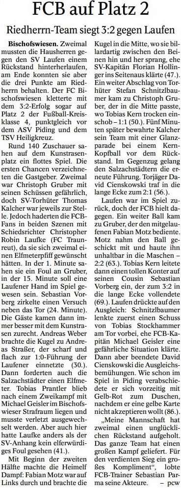 Auch die Presse berichtete am 30. August vom SV Laufen:
