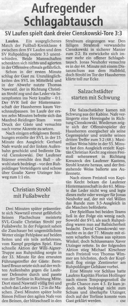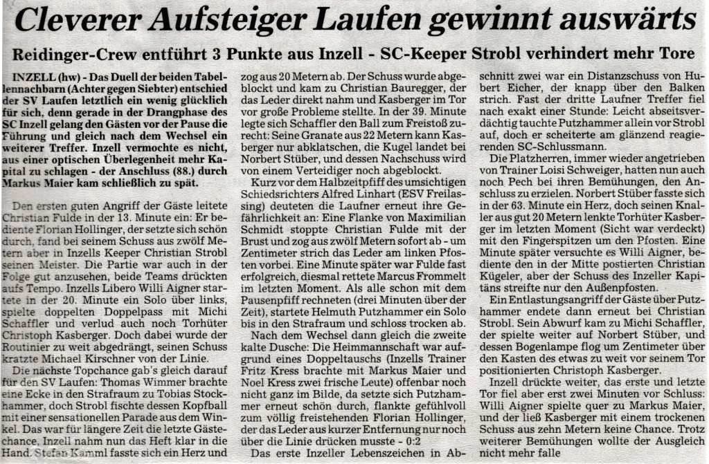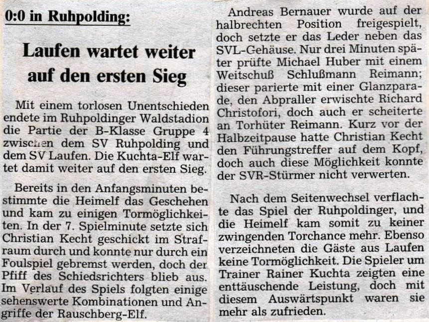 Auch die Presse berichtete am 2. September vom SV Laufen: