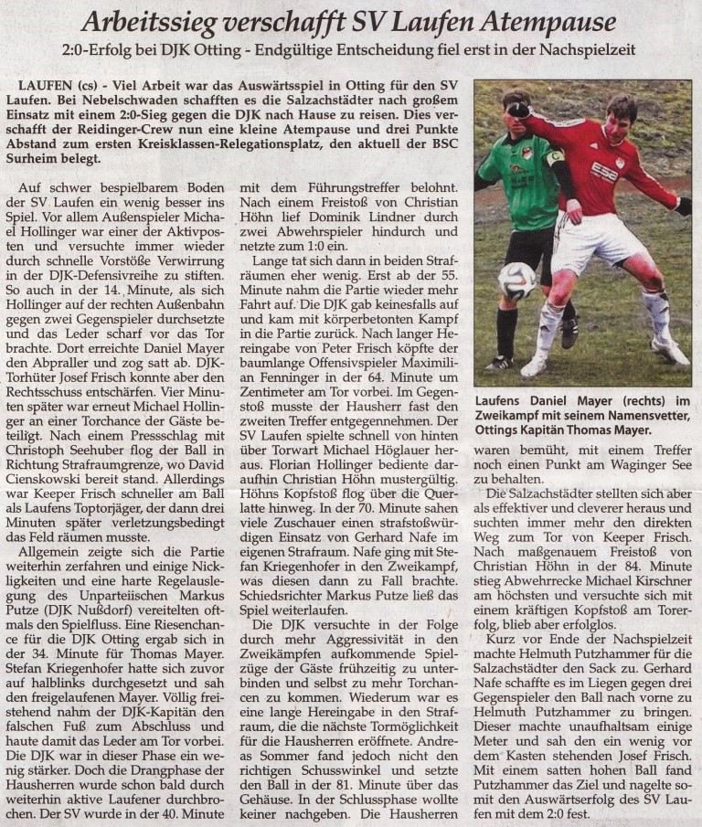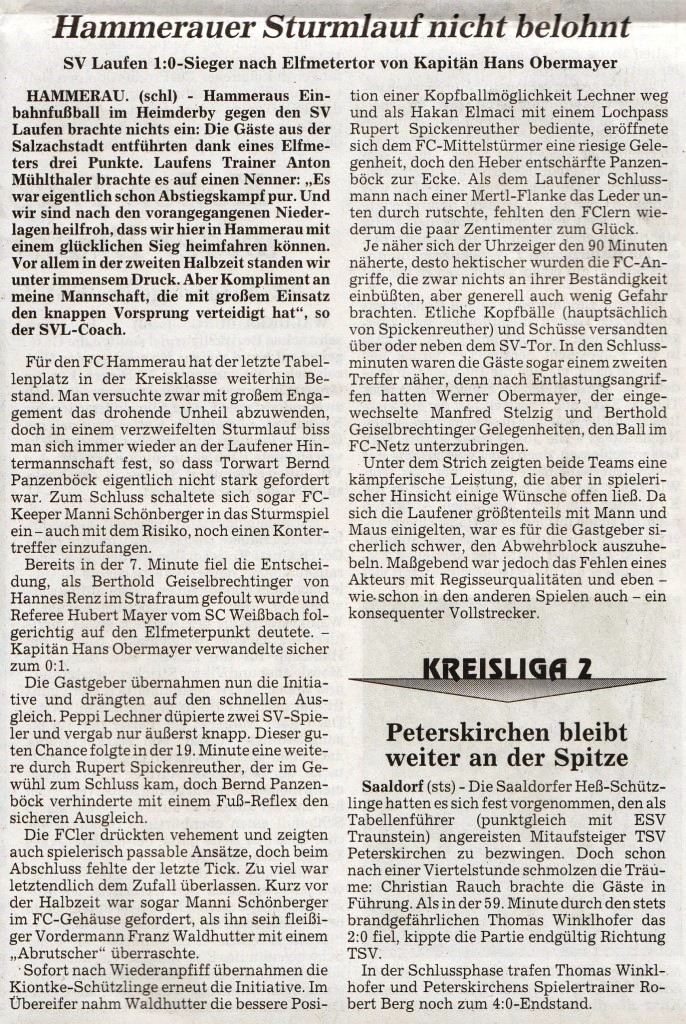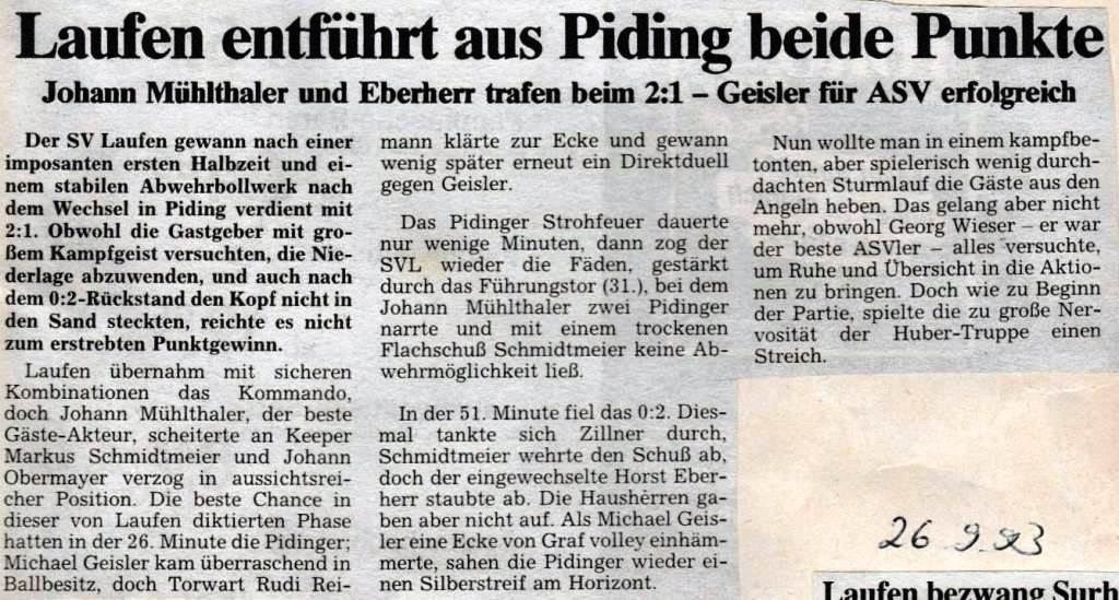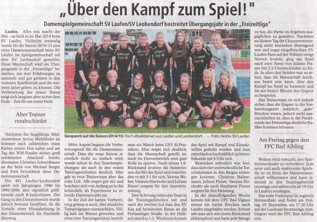 Auch die Presse berichtete am 14. September vom SV Laufen: