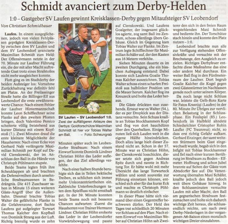 Der SV Laufen war an diesem Tag mit Sicherheit nicht fünf Tore schlechter als der SC Anger, doch die vor allem im zweiten Durchgang eingebrachten Investitionen blieben unbelohnt und wurden mit lediglich einem "Ehrentreffer" belohnt. Während die 1. Mannschaft des SV Laufen in Anger eine 6:1 Niederlage einstecken musste, war Laufens 2. Mannschaft beim Auswärtsspiel in Surberg erfolgreich. Mit 3:2 konnte der SV Laufen II in der C-Klasse 6 ein positives Ergebnis einfahren.