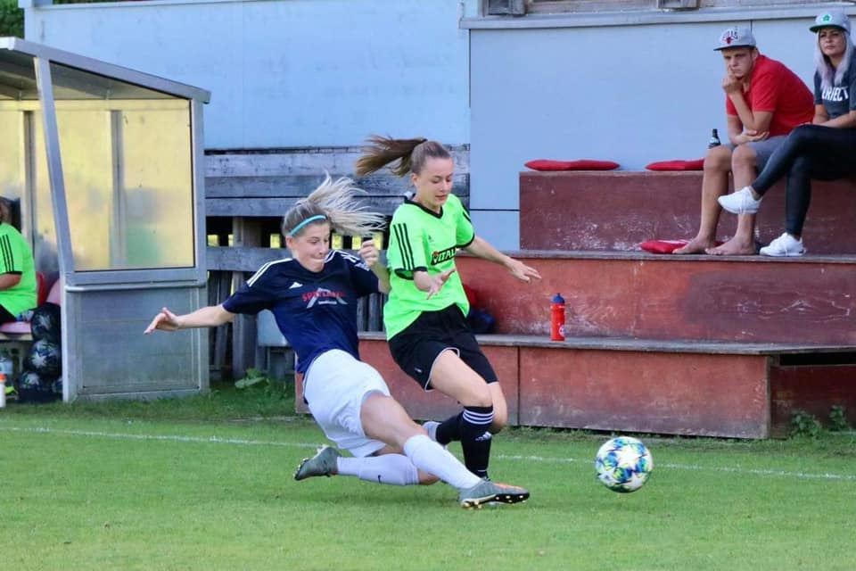Heute das Bild 06 - Hier sehen wir Jessica Antosch von der SG Fridolfing/Laufen (Bildmitte) in einer Zweikampfszene.