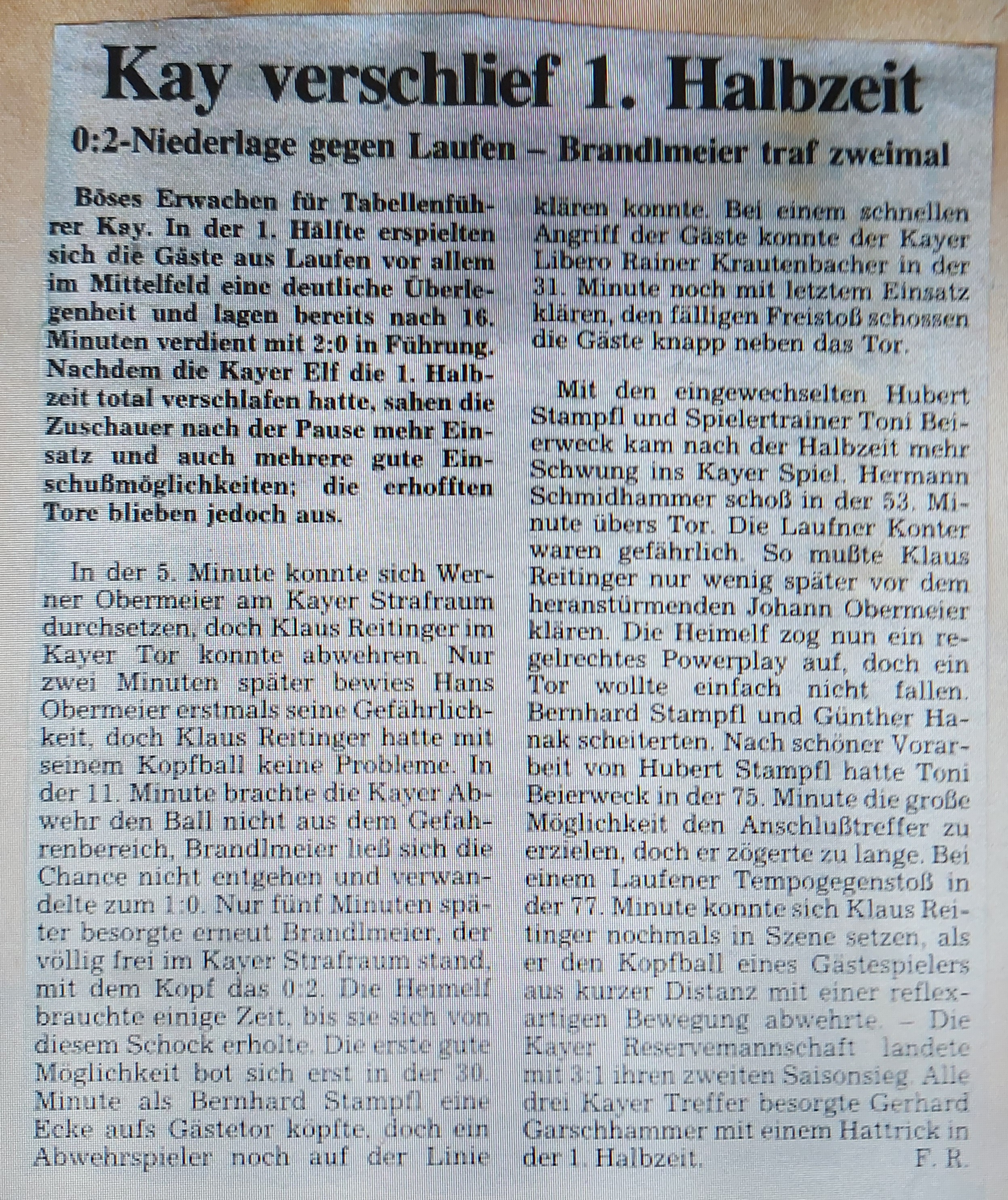 Heute mit der Saison 1993/1994 dem Bericht des Heimspiels gegen den SV Kay: