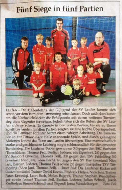 Vor 9 Jahren - 3. Februar 2015 - F2 Hallenkicker des SV Laufen gewinnen alle Spiele