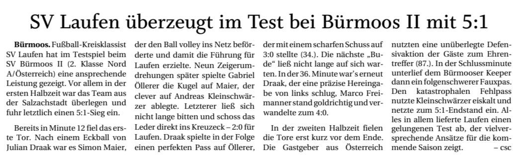 Auf dieser Seite finden sie die Presseartikel über den SV Laufen.