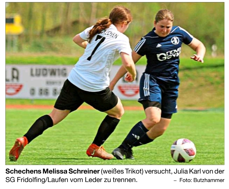 In der Frauen-Fußball-Kreisliga stand für die SG Fridolfing/Laufen am vergangenen Wochenende das Heimspiel gegen den SV Schechen auf dem Programm.