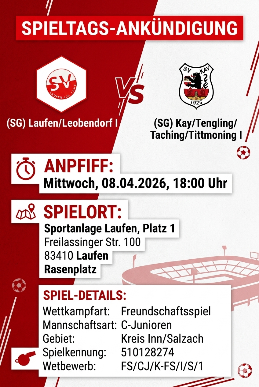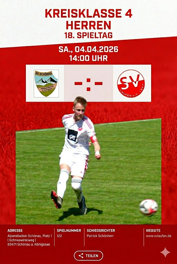 Laufen: Wenn am Samstag, den 4. April 2026, wohl der Frühling im Berchtesgadener Land Einzug hält, wartet auf die Fußballfamilie des SV Laufen ein wichtiges Programm. Von der prachtvollen Kulisse des Alpenstadions und des Watzmann-Massivs. bis hin zum prestigeträchtigen Nachbarschaftsduell in Fridolfing – für die Salzachstädter geht es an diesem Wochenende um weit mehr als nur drei Punkte. Es geht um Charakter, Momentum und die Weichenstellung für die entscheidende Saisonphase.