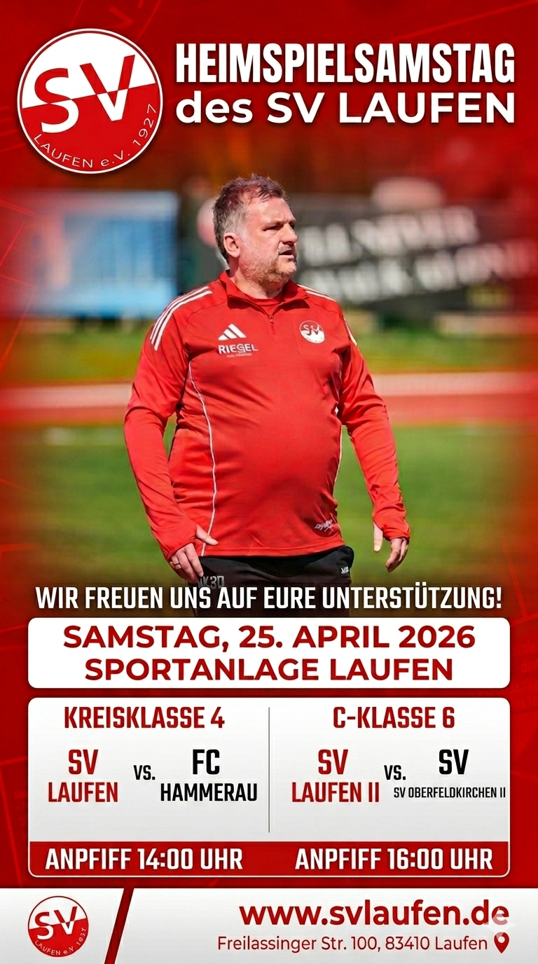 Samstag, 25. April 2026, 14.00 Uhr: SV Laufen vs. FC Hammerau.
