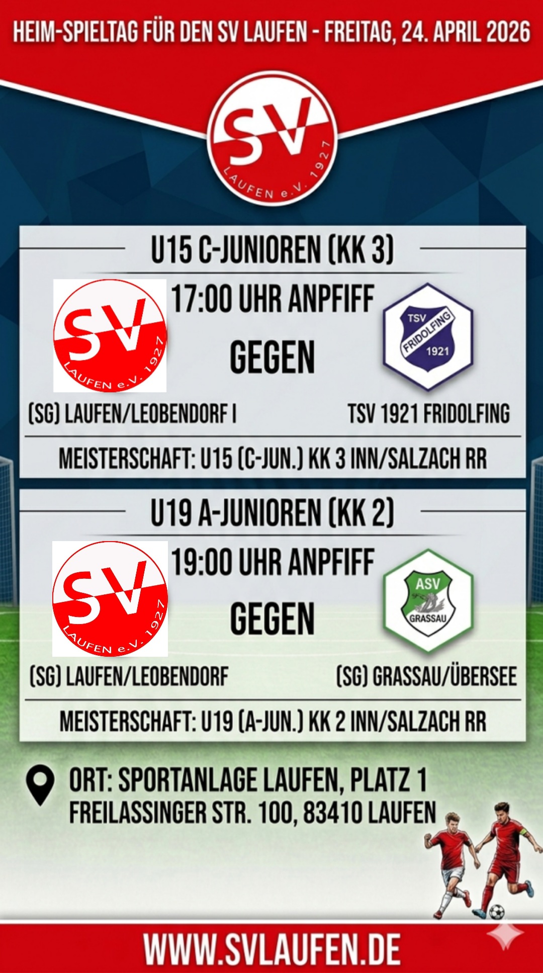 Mittwoch, 22. April 2026, 17.00 Uhr: SV Laufen vs. SV Leobendorf.