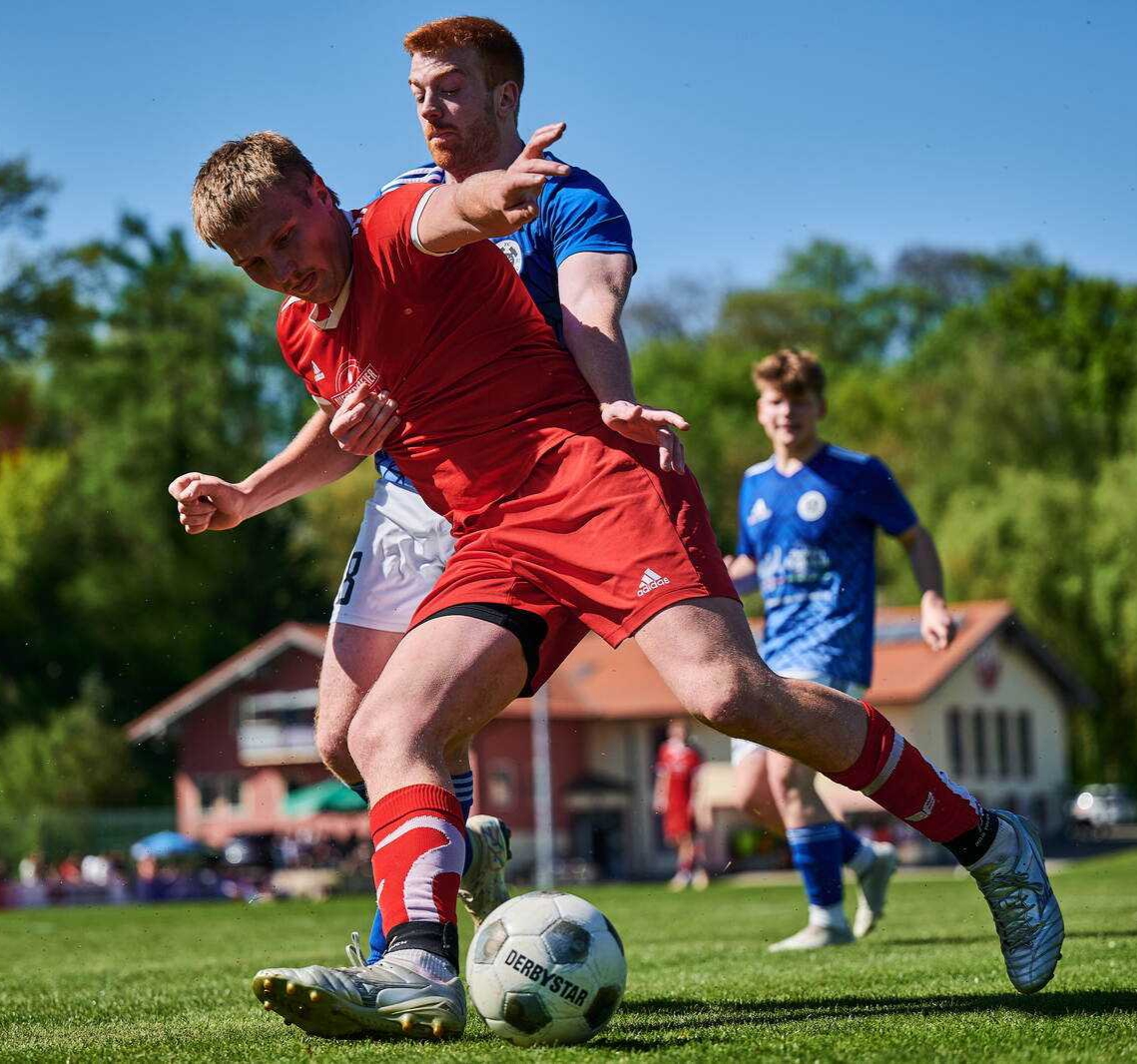 Beide Mannschaften traten definitiv von Beginn an ohne Visier an. Kleiner Angriffsversuche in den ersten Spielminuten blieben dabei beidseits noch ohne Erfolg. Nach zehn Spielminuten sahen die 120 Zuschauer die erste große Tormöglichkeit. Laufens Simon Maier war es, der von der Torauslinie auf den zweiten Pfosten flankte. Dort legte Julian Draak seinen Kopfstoß über den Querbalken hinweg. Die Quittung kassierte der SV Laufen in der 13. Minute. Quirin Lapper schlug für den Club die Ecke in den Fünfer. Die Hausherren konnten nicht sauber klären, so dass Kilian Höglauer das Runde ins Eckige schoss - 0:1. Zwei Minuten später landete ein weiter Ball aus dem eigenen Strafraum Kapitän Noah Wiesbacher, der für die Gäste in den Strafraum stach. Nach dem Wiesbacher-Querpass wurde Kilian Höglauer noch abgeblockt. Wiederum nur zwei Minuten später waren es die Hausherren, die sich die nächste Tormöglichkeit erspielten. Nach Eckball von Julian Draak traf Florian Ramgraber das Leder mustergütlig per Kopf, doch Sebastian Böhm rettete für seine Farben auf der Torlinie die Führung. Der FC Hammerau wurde nun ein wenig stärker und war für den Rest der ersten Hälfte das bessere Team. Raphael Zelzer spielte in der 22. Minute einen Eckball kurz auf Quirin Lapper, der aus dem Halbfeld frech abzog. Lappers Schuss strich übers Kreuzeck hinweg. 35 Minuten waren bei sommerlichen Temperaturen in Laufen gespielt, als der Gast den zweiten Treffer erzielte David Scheuerer stürmte in den Strafraum, wurde wohl ein wenig in die Zange genommen und fiel zu Boden. Den Strafstoß verwandelte Philip Hosp zur 2:0 Pausenführung zugunsten des FC Hammerau.