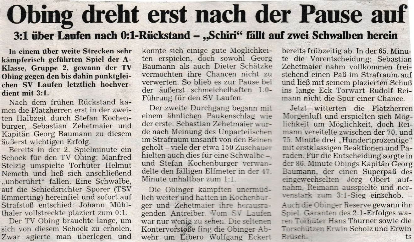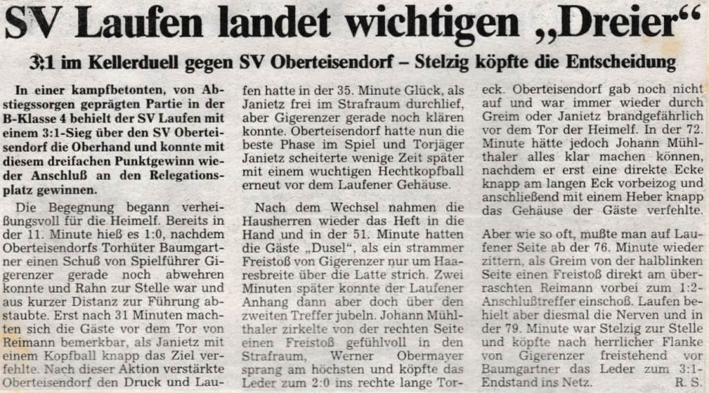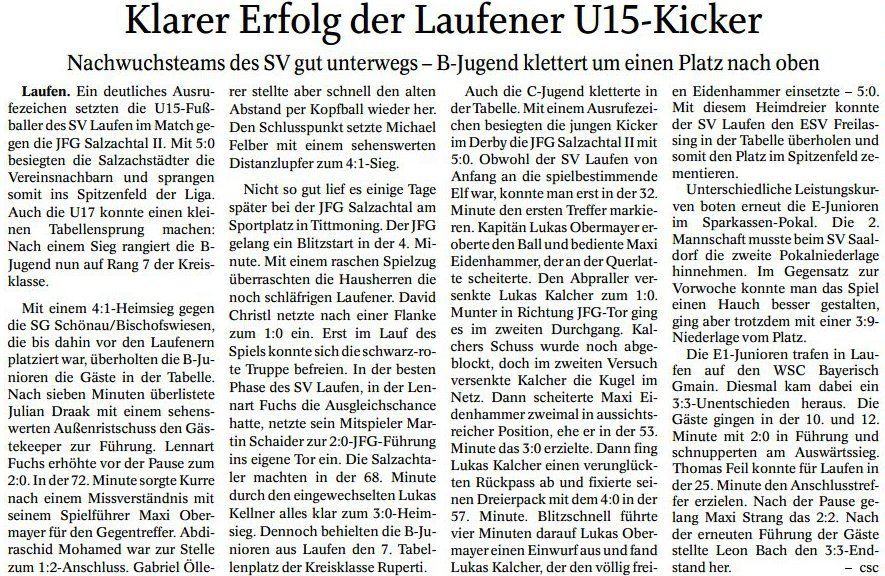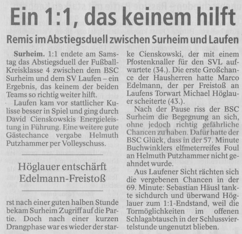 Auch die Presse berichtete am 26. April wieder vom SV Laufen.