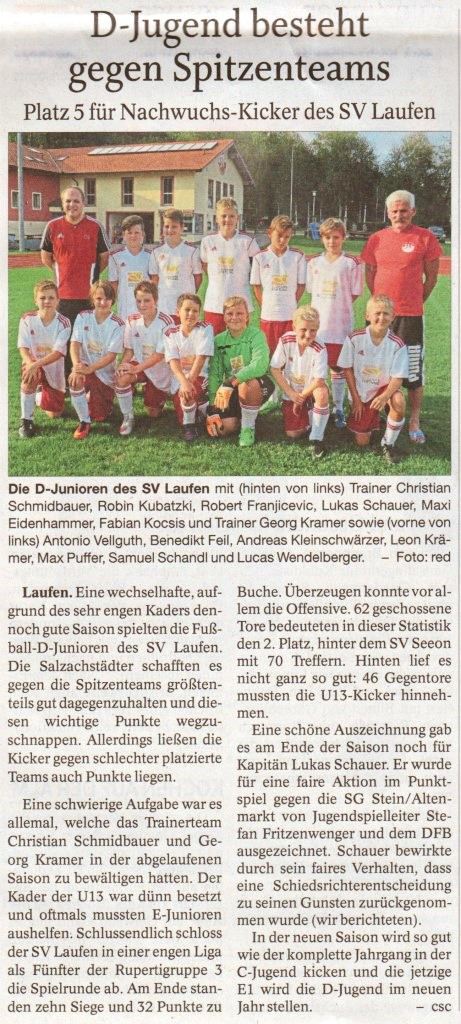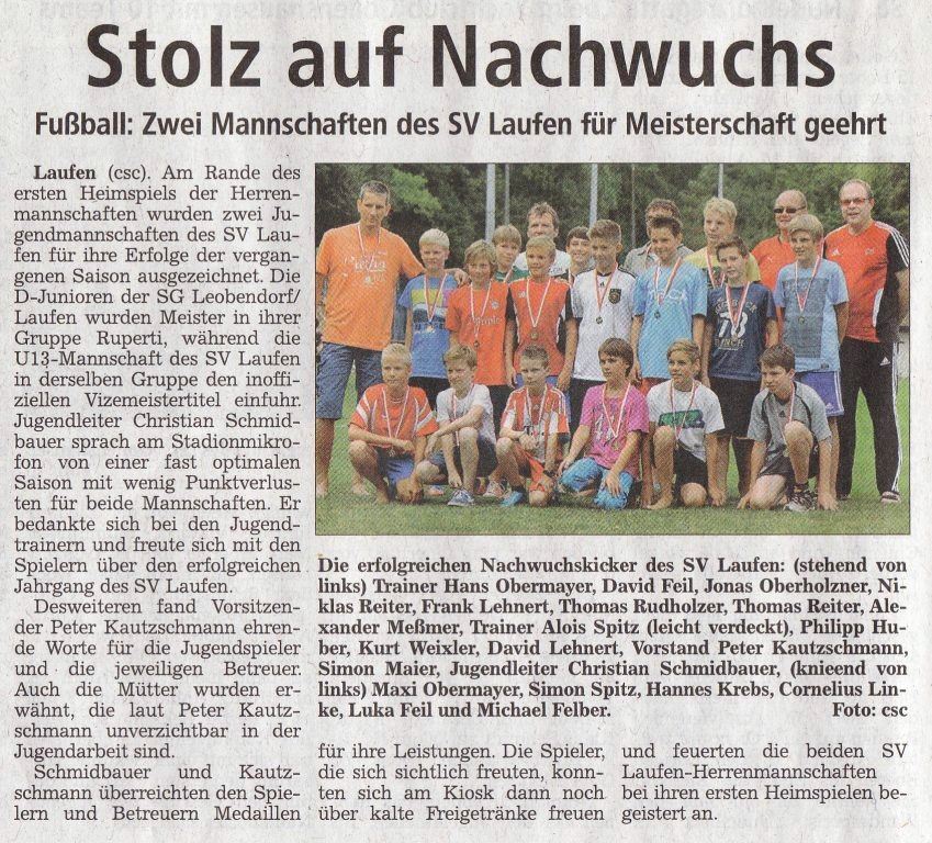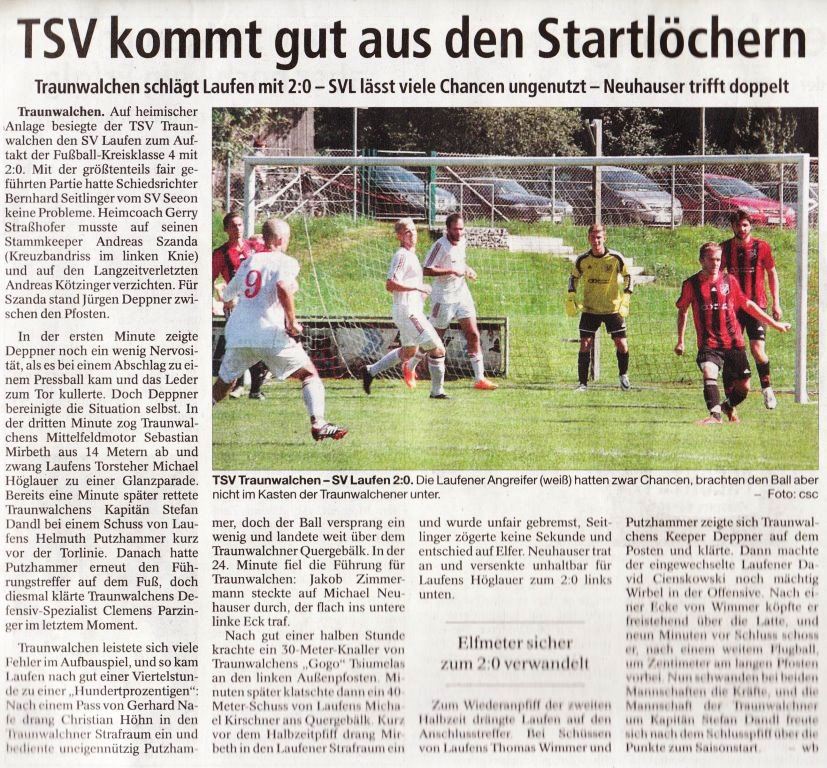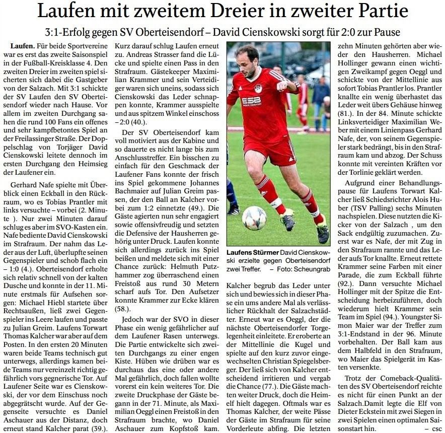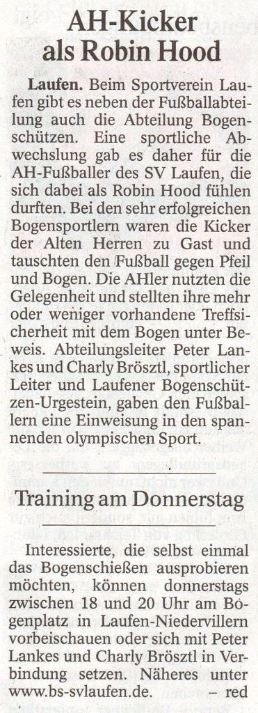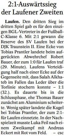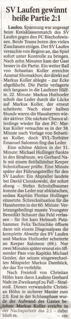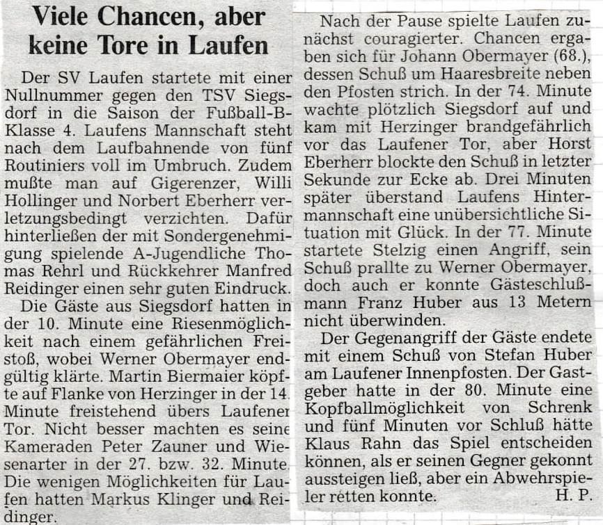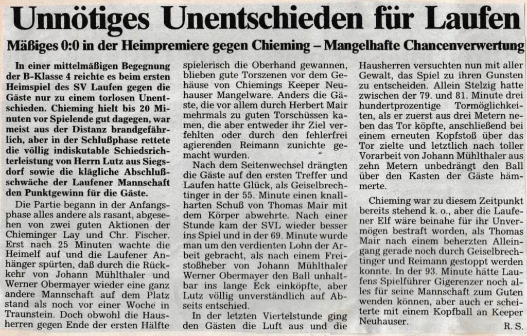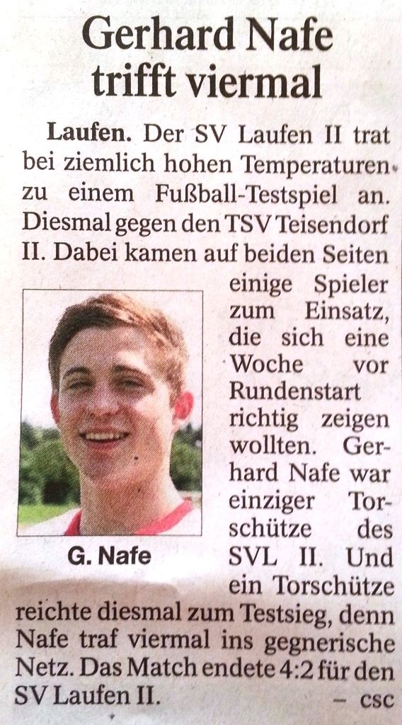 Die Presse berichtete auch am 17. August über den SV Laufen: