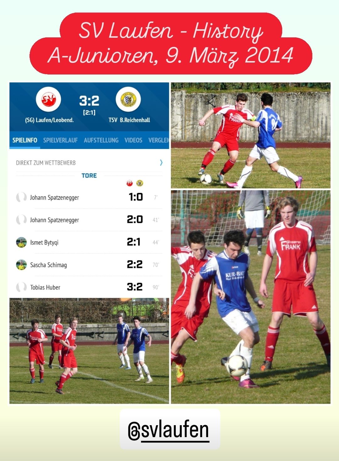 Vor 65 Zuschauern wollte sich der SVL nach der Derbyniederlage gegen den SV Leobendorf (1:2) und der Klatsch beim ASV Piding (1:6) einigermaßen rehabilitieren. Dies gelang den Salzachstädtern mit einem Dreier, der in der 10. Minute durch den ersten Treffer von Gabriel Öllerer eingeleitet wurde. Nico Jani bediente in dieser Spielaktion aus dem Mittelfeld klug Julian Draak, der in Richtung Torauslinie startete. Draak servierte das Leder flach ins Zentrum, wo Gabriel Öllerer mit der Hacke vollendete - 1:0. Selbst nach einer halben Stunde Spielzeit gab es im Grunde kaum aufregende Aktionen und die Partie lief unter der guten Leitung von Schiedsrichter Andreas Lackner ruhig und unaufgeregt die Zeit herunter. Nach dieser halben Stunde hätte Gabriel Öllerer gut und gerne den zweiten Treffer erzielen können. Nach einem Eckball von Julian Draak stieg Öllerer am höchsten, doch sein Kopfstoß wurde auf der Torlinie gerettet. Ein Pfostentreffer in der 40. Minute verhinderte abermals Laufens zweites Tor. Ein Freistoß, geschossen von Öllerer persönlich, landete am Aluminium. Wenige Sekunden vor dem Halbzeitpfiff allerdings schaffte es der Gast aus der Schönau erstmals brandgefährlich zu werden. Eine Flanke von der rechten Außenposition segelte hoch ins Zentrum auf Sebastian Ebner. Ebner ließ zwei Laufener Akteure mit einer Finte stehen und netzte zum 1:1 Ausgleichstreffer ein.